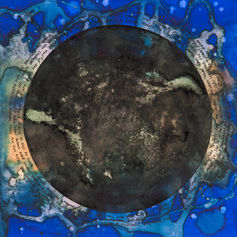 Since 2016, as evidenced in the works presented in Fugitive Dust, a breakdown of the picture plane occurs in Pravat’s works where we are offered not so much an integrated image of the contemporary urban-scape but a disintegration of it as blue-prints, maps, architecture and geological land mass collapse into one another. The never-ending construction of his paintings now captures the unabating move ments between wear-and-tear, erosion, disintegration, demolition and reconstruction. The structures that are visible in his new works are made out of bricks and rubble that are further broken down. His studio is a site for multiple forms of material accumulations where the creation of these artworks mobilise a team of people who bring their knowledge from construction sites. Dust becomes an ally and a medium in his studio during the slow process of breaking down and building up his artworks.